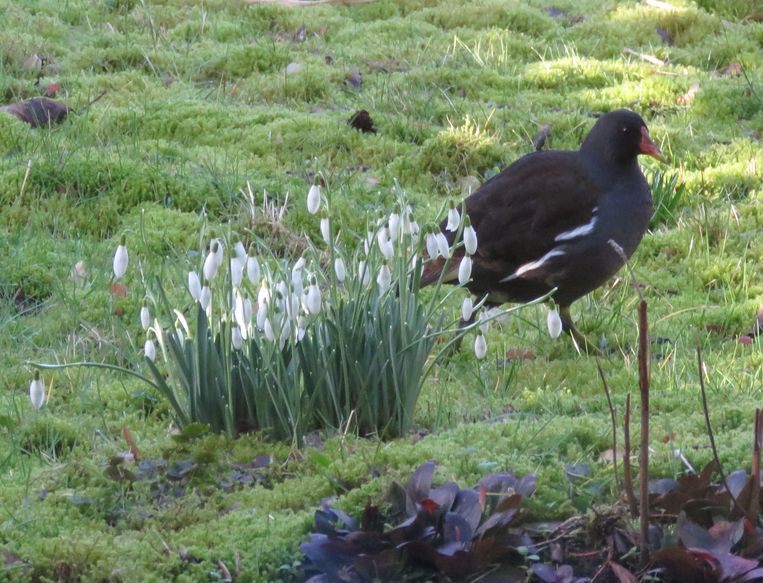 waterhoen in de tuin